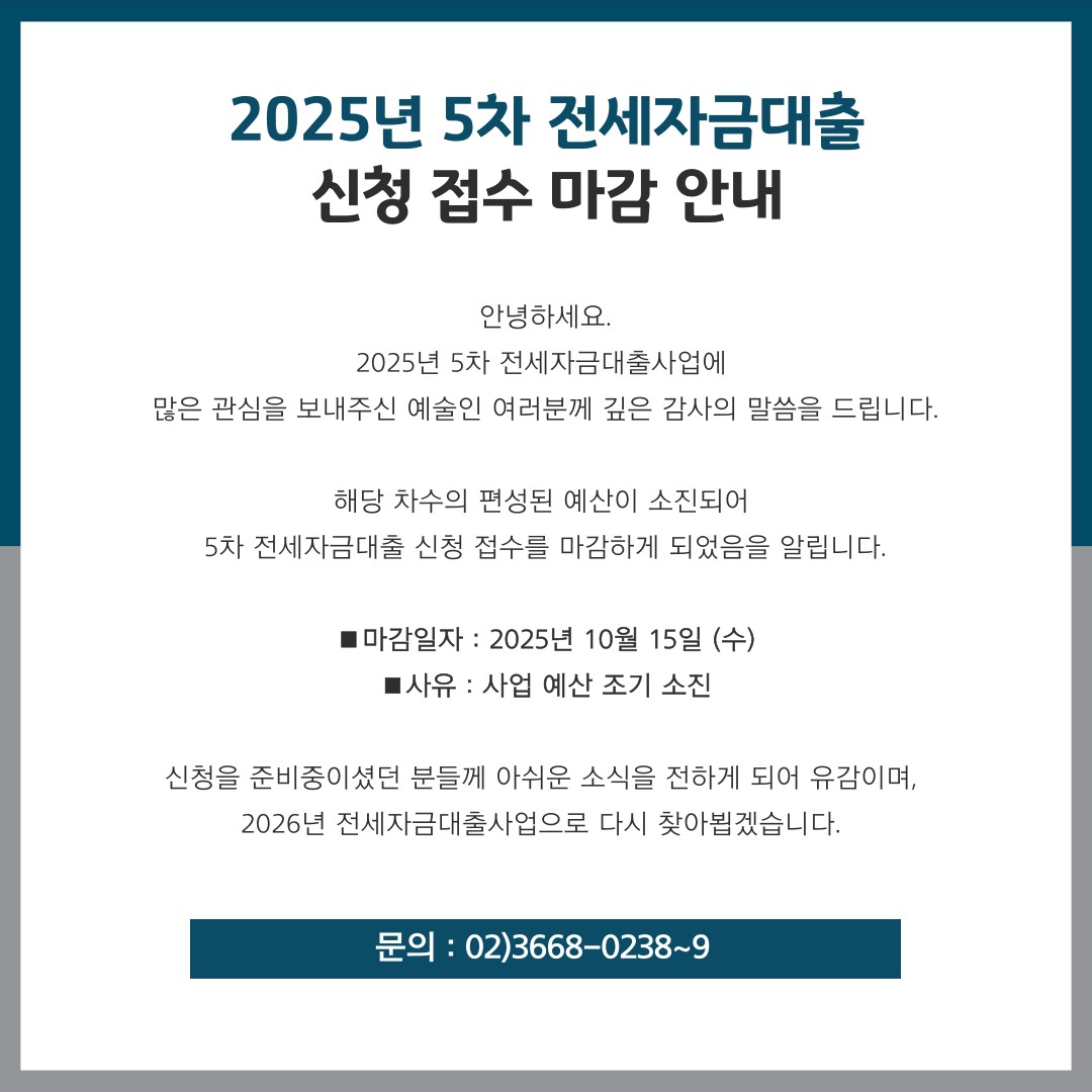 - [보도자료] 2025년 하반기 예술인 전세자금대출 시행 25.07.31 +