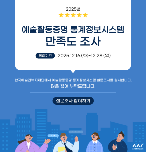 - 공지 [안내] 예술활동증명 신청 시스템 정기 점검 안내(2025. 12. 17. ~ 2026. 1. 12.) 25.11.26 +