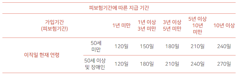 ① 근로자와 동일하게 피보험기간 및 연령에 따라 120~270일간 지급 합니다.